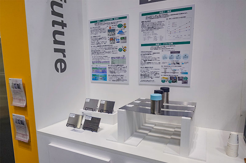 本展示会ではダストボックスが電動開閉となり、手を触れず衛生的にペーパータオルを捨てられるようになりました。